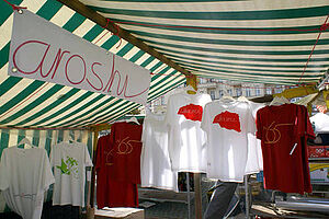 Die Bekleidung, die Anke Rommel für ihr Ende 2010 gegründetes Modelabel aroshi entwirft, trägt ausschließlich Weddinger Motive. Bisher setzte sie auch Weddings Grün- und Wasserflächen, das türkische Kunstwort "Almanci" und die alte Bezeichnung des Postzustellbezirks Berlin-Wedding ("65") grafisch um. "Der Wedding ist sehr lebendig und abwechslungsreich. Das inspiriert mich", erklärt sie ihre Motivwahl. Das Brunnenviertel ist bisher noch nicht im Sortiment. Obwohl die Silhouette der Deutschen Welle mit ihren Parabolantennen, der Flakturm im Humboldthain oder das Diesterweg Gymnasium in der Handschrift von Anke Rommel bestimmt reizvoll aussähen.