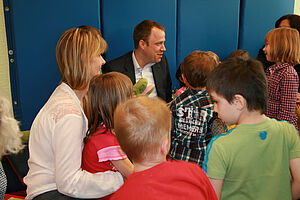 Der Senator für Gesundheit und Soziales Mario Czaja überreichte der Kita "Kiek mal" im Quartier Marzahn NordWest am 13.05.2013 sechs Lesekoffer mit jeweils neun Kinderbüchern – und las den Kleinen auch gleich daraus vor. Mit dem Auftakt der Initiative zur Leseförderung des Projektträgers "Stiftung Lesen" werden alle 2300 Berliner Kitas mit Koffern ausgerüstet. Die Aktion soll neue Impulse zur Leseförderung setzen.