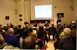 Vor rund 85 Anwohnerinnen und Anwohnern erläuterten unter anderem Bezirksstadtrat Carsten Spallek, Michael Klinnert vom Quartiersmanagement Magdeburger Platz und Alexander Reimann vom Planungsbüro LK Argus die Pläne für die Baumaßnahmen an der Flottwellstraße.