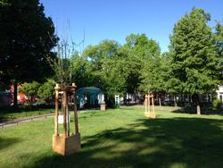 Im Koeltzepark im Quartier Spandauer Neustadt wurden auf der Wiese vor dem Paul-Schneider-Haus fünf Obstbäume gepflanzt. Die Kinder und Jugendlichen der Freizeitstätte Koeltzepark packten am 22.04.2015 gemeinsam an. Das Ergebnis ist jetzt in einem Video zu sehen.