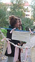 Am Dienstag wurde es dann sportlich: Sieben Teams traten zum Streetsoccer im „Yo! 22“ gegeneinander an. Ein Live-Strickart-Projekt gab es dann am Mittwoch auf dem Wartheplatz. Das Warthe-Mahl, die Stadtteilmütter Neukölln und das Strickart Projekt Warthemahl verstrickten Passanten und Anwohnerschaft in Gespräche über den Kiez, die Nachbarschaft, das Zusammenleben und Wünsche, die noch offen sind. Letztere konnten auf bunte Stoffstreifen notiert und in die Installation eingefügt werden.