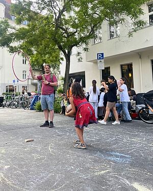 Dieses Jahr lud stadt.menschen.berlin GmbH die Nachbarschaft bereits zu drei Netzwerktreffen ein. Alle Teilnehmenden konnten aktiv Ideen und Anregungen einbringen und diskutieren, sodass beim zweiten und dritten Treffen bereits mit der konkreten Planung und Umsetzung in den Gruppen losgelegt werden konnte. Stolz konnte man dann ein Konzept für die Spiel- und Nachbarschaftsstraßen präsentieren und durchführen. Und weil das Projekt so gut angenommen wird, wird es auch 2025 mit den temporären Spiel- und Nachbarschaftsstraßen weitergehen.