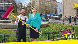 Die Schirmherren, der Neuköllner Bezirksbürgermeister Martin Hikel (links) und der Bezirksstadtrat für Jugend und Gesundheit Falko Liecke (Mitte) mit Renate Lauzemis (rechts) von der Kiez AG. Foto: Holger Heiland, QM Weisse Siedlung Dammweg