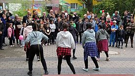 Die Kiez AG Köllnische Heide lud am 31. August 2018 in die Hänselstraße zu einem Fest ein. Für Kinder gab es ein buntes Programm und Interessierte konnten sich über das Geschehen im Kiez informieren.