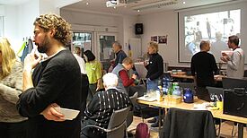 Im Quartiersmanagement-(QM)-Gebiet Donaustraße Nord endete die Gartensaison mit einem Herbstfest. Bei Tee, Gesprächen und kreativen Aktionen wurden Pflanzen verschenkt, Beete vorbereitet und Stofftaschen mit buntem Laub bedruckt.