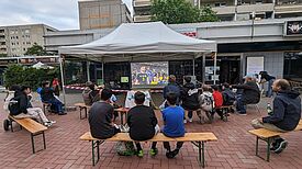 Gemeinsam aktiv werden: Im Quartiersmanagement-(QM)-Gebiet Kosmosviertel drehte sich beim Kiezgespräch alles um ehrenamtliches Gärtnern und einen neuen Trödelmarkt. Anwohnende entwickelten zusammen Ideen, um den Kiez lebendiger zu gestalten.