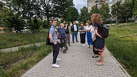 Rund ein Dutzend interessierte und engagierte Anwohnende trafen sich Anfang März des Jahres 2025 bei Brezeln und Obst im Quartiersmanagement-(QM)-Gebiet Kosmosviertel, um gemeinsam den Wärmespaziergang vom 12. Februar 2025 auszuwerten.