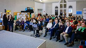 Über der Bühne schwebten beim Neujahresempfang im Quartiersmanagement-(QM)-Gebiet Letteplatz die traditionellen Zahlen-Luftballons des aktuellen Jahres: „2025“. Das bedeutet 16 Jahre Quartiersmanagement Letteplatz und viele Veränderungen, die seitdem angestoßen wurden: Zeit das gemeinsam zu feiern.