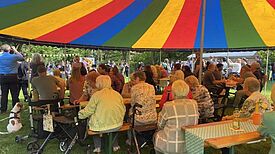Die Mitglieder des Quartiersrats Nahariyastraße sitzen im Stuhlkreis und besprechen Bauprojekte.